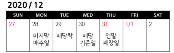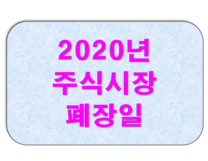 2020년 마지막에 와서 많은 분들이 2020년 주식시장 폐장일과 다음해인 2021년 개장일에 대해서 많이들 찾아보시는 것 같습니다. 한국 증권거래소의 2020년 폐장일은 12월 30일(수) 입니다. 당장 내일이네요. 수요일까지 주식 거래가 가능하고 목요일부터는 휴장에 들어갑니다.