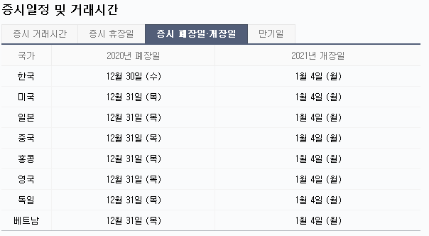 2021년 주식시장 개장일은 2021년 1월 4일(월요일) 입니다.