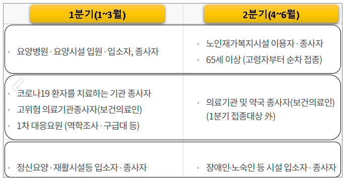 1분기와 2분기는 위와 같이 6월까지 순차적으로 대상자를 확대해가며 접종 계획입니다.